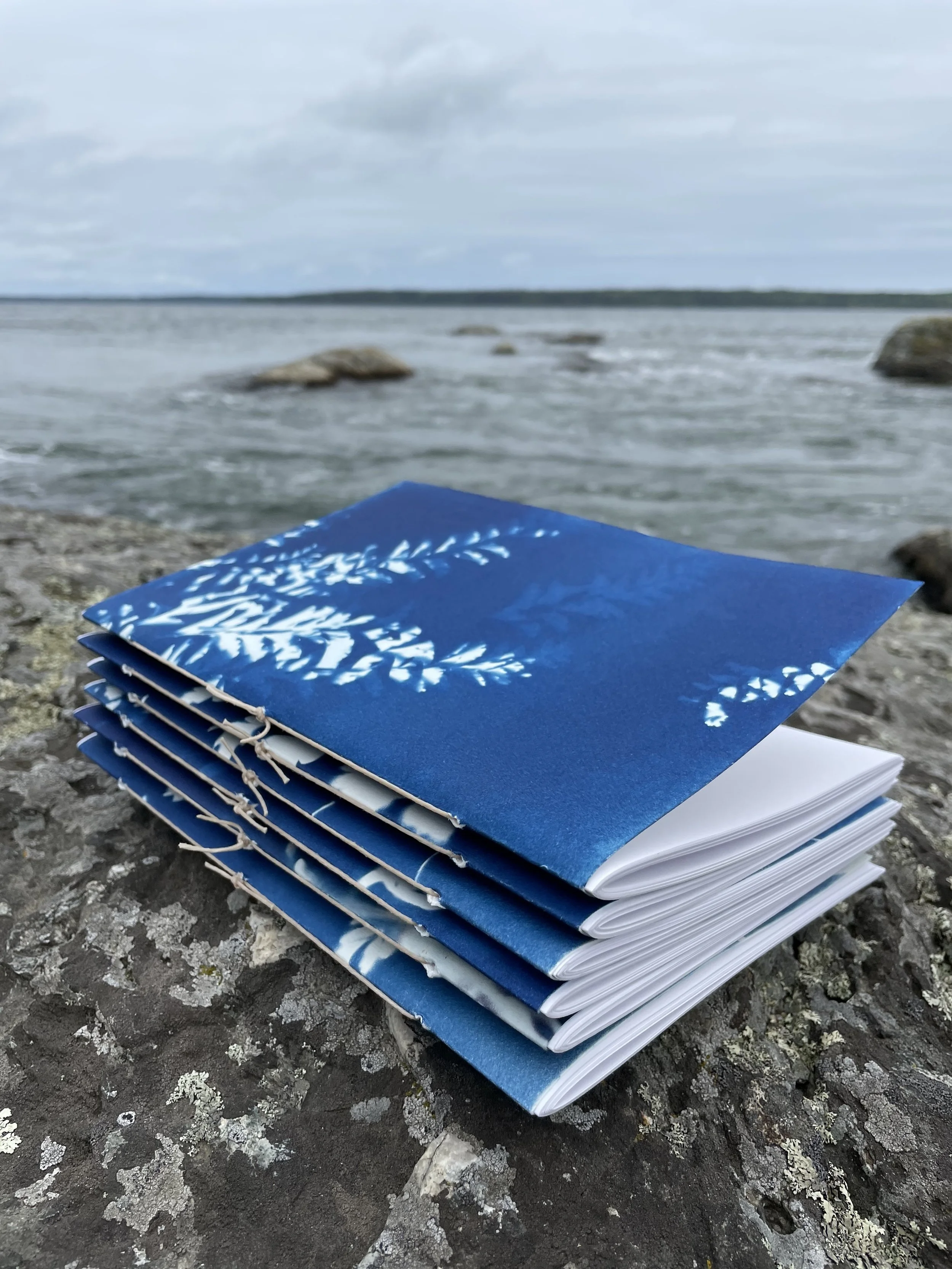 Join Katama Murray, art educator and owner of Teach Peace Prints, for a hands-on workshop to learn the photographic print process of cyanotype! Dive into the realm of using light and shadow to capture moments of time, place, history, and imagination. Participants will learn the basics of cyanotype printing on paper using found objects and natural materials, and will make their own pamphlet stitch journal to enjoy and use for future creating. All are welcome and no prior experience is necessary to join!
